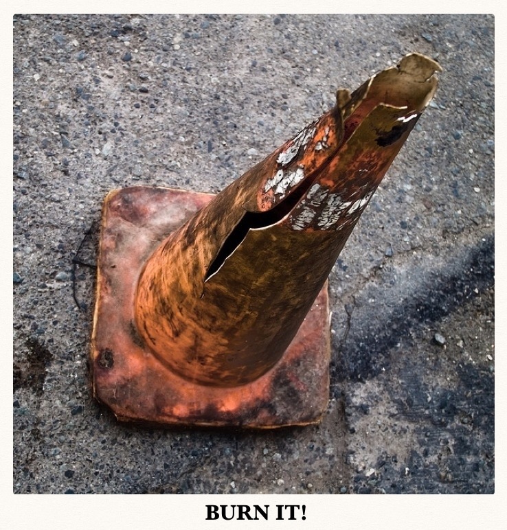 A punny reference to A Monty Python skit – (these traffic cones are colloquially called ‘witches hats’ in Oz, just so you know)