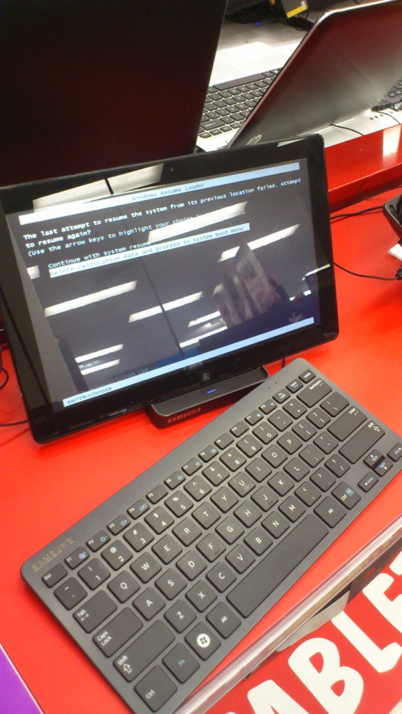 Every time I’m in a store with a computer section there seems to be a tablet running Windows that has just stopped working. Doesn’t fill me with confidence.